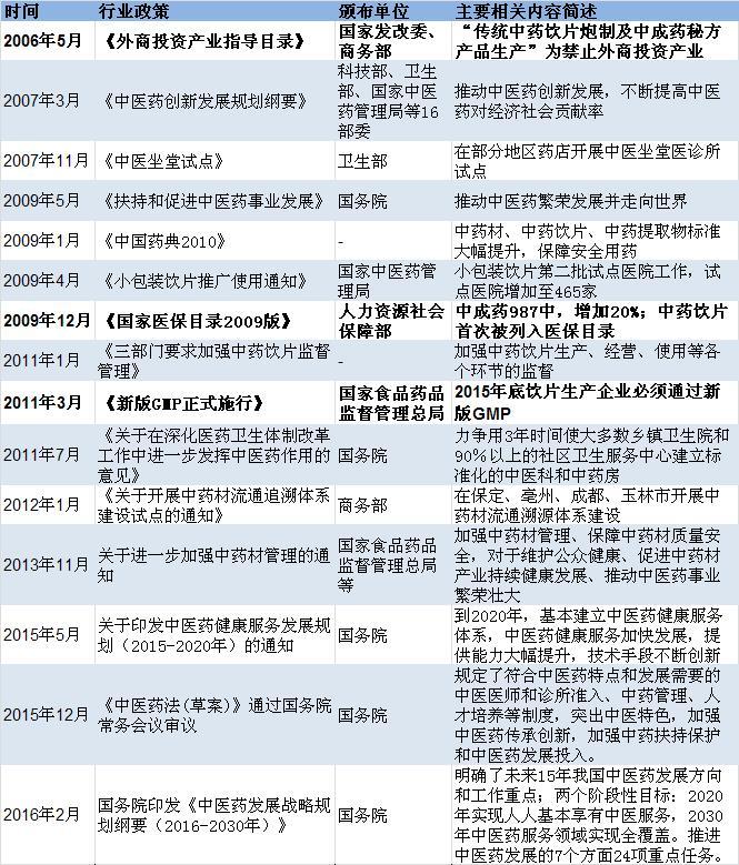 2006-2016年中藥飲片行業主要政策匯總